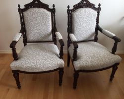 Myymme myös vanhoja tuoleja ja sohvia, jotka kaikki vaativat jonkinlaista korjausta – verhoilua. Kunnostaminen tehdään perinteisin menetelmin, vanhaa tyyliä kunnioittaen. Myös puuosien pintakäsittelyn saat kauttamme. Voit myös halutessasi ostaa kalusteita niiden nykyisessä kunnossa.